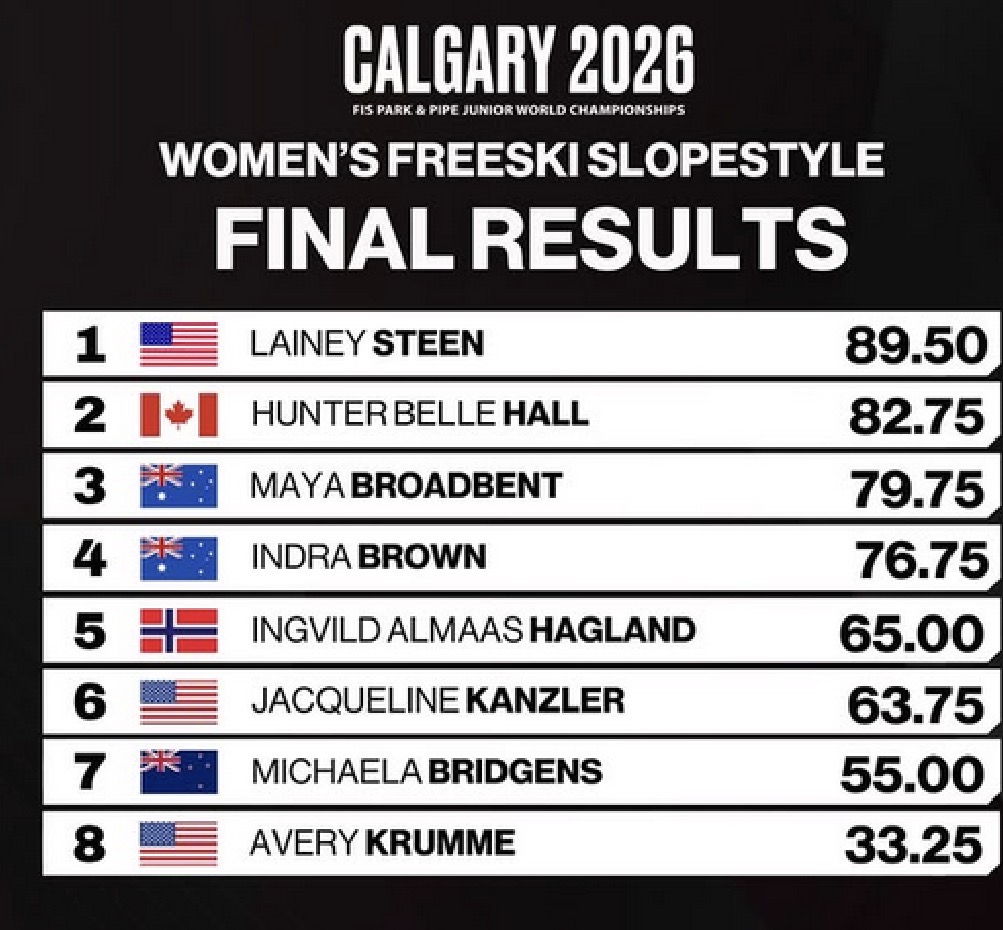 Team Summit freeskier Lainey Steen, 14, won gold at Junior World Championships in Calgary on Feb. 28. She was flawless on the slopestyle course en route to her first junior worlds title.